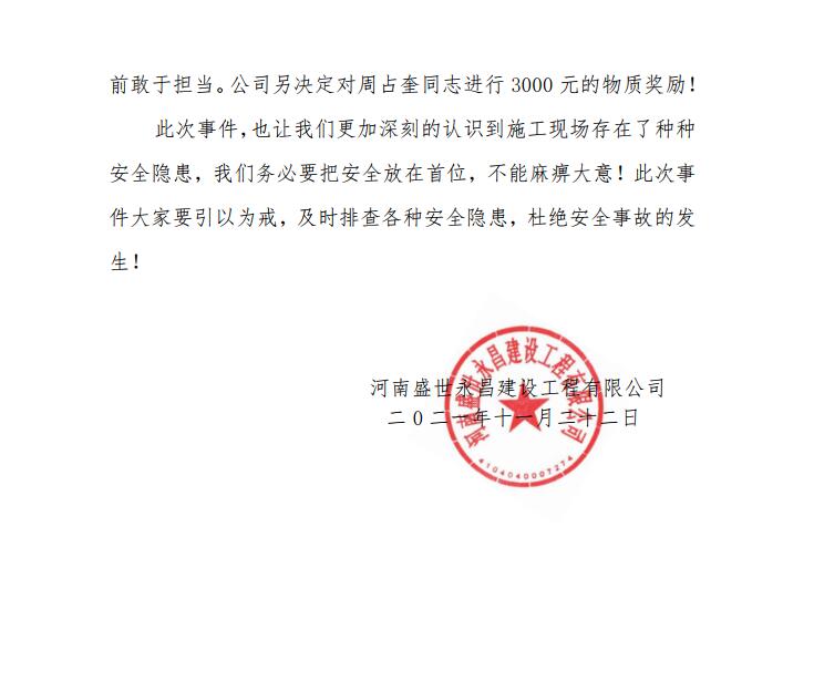 關于對周占奎同志通報表揚的通知