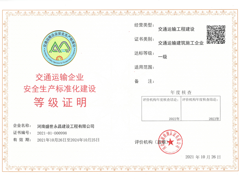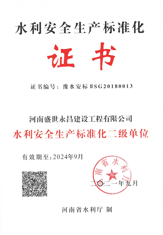 水利安全生產(chǎn)標準化證書